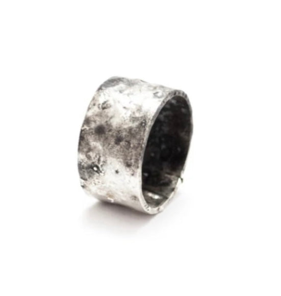 Anillo de Plata 950 hecho a mano con textura derretida y envejecido.