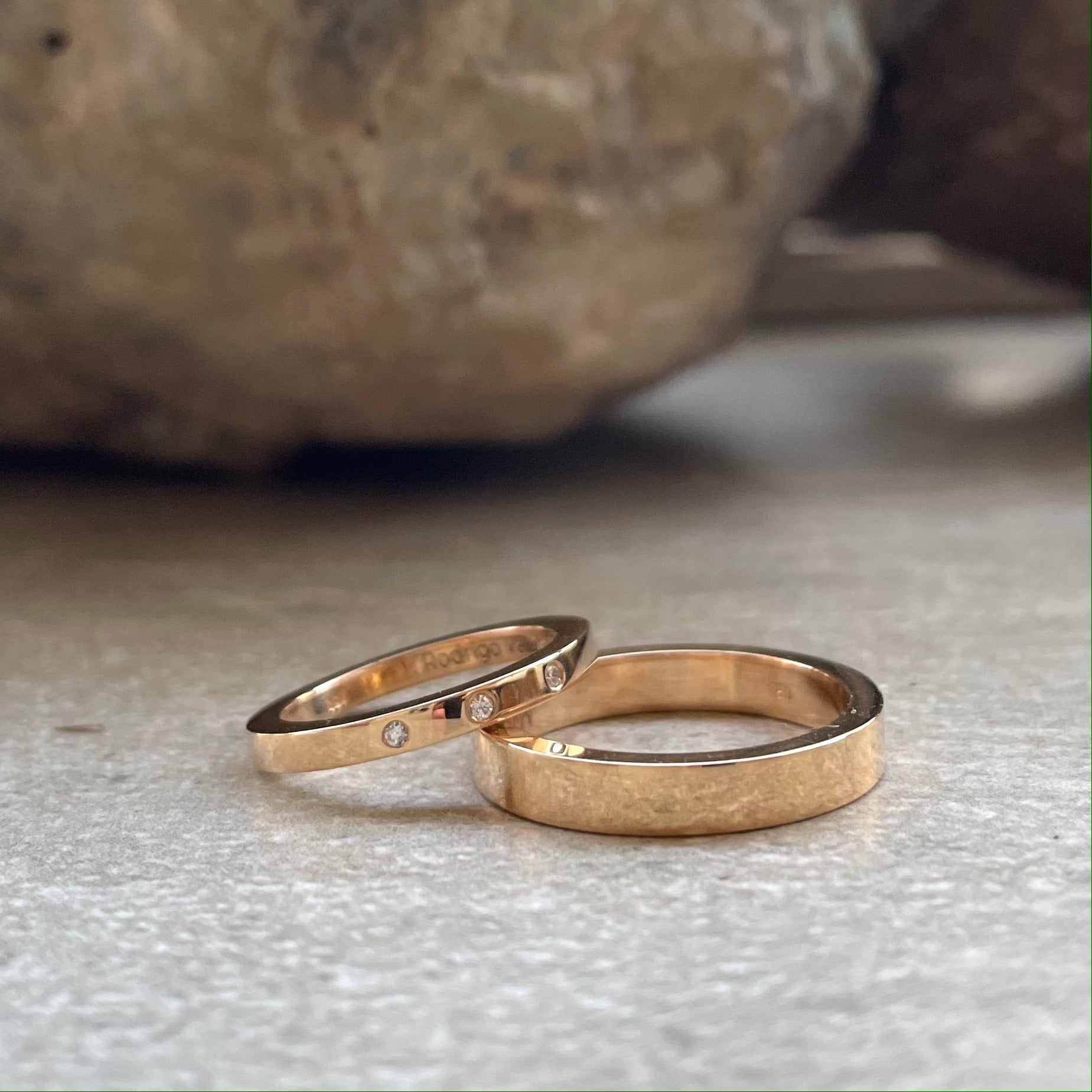 Argollas Corte Plano en Oro Rosado + Diamantes