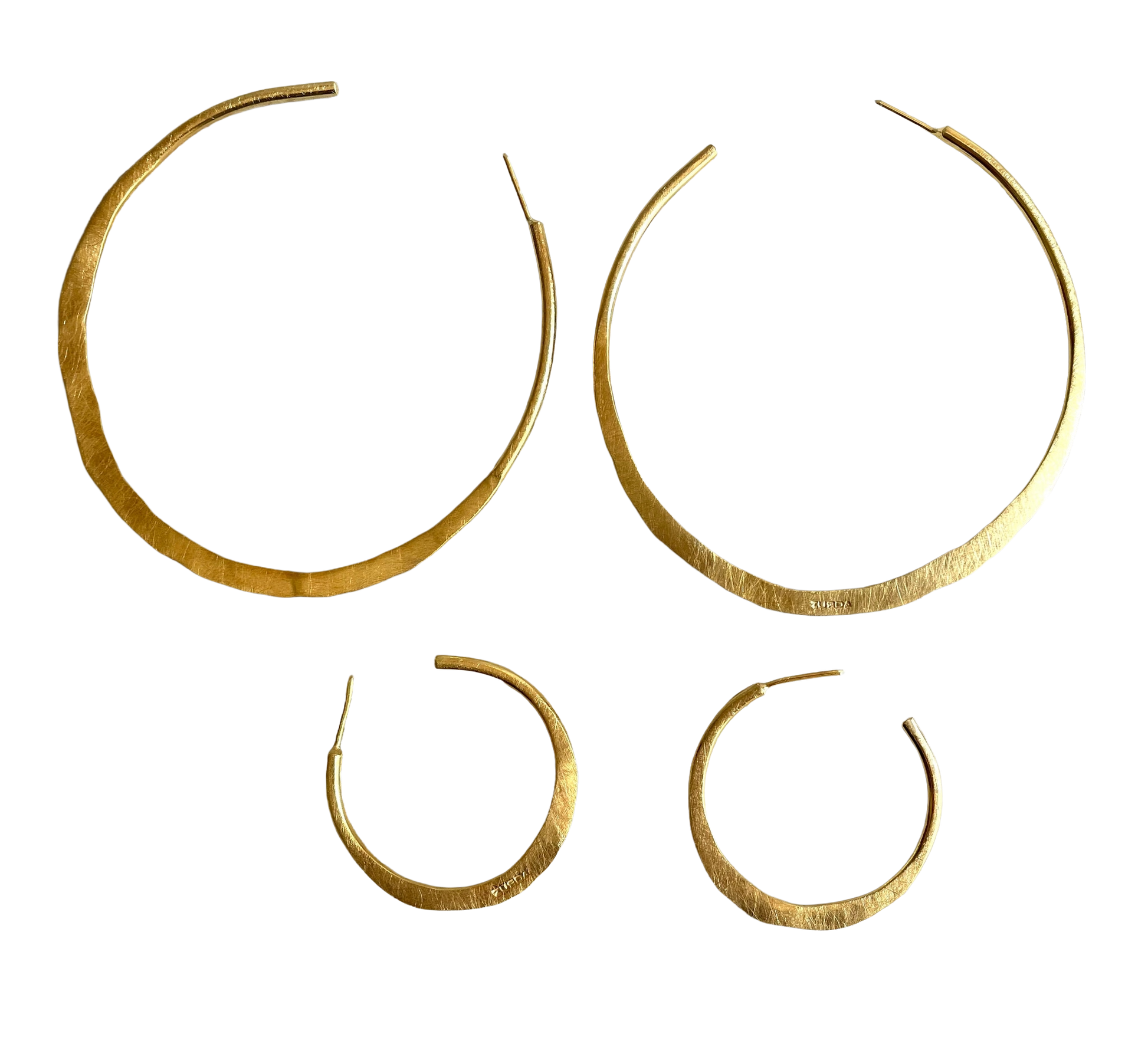 Aros tipo argollas, forjadas a mano con variación de espesor e inspiración tribal.