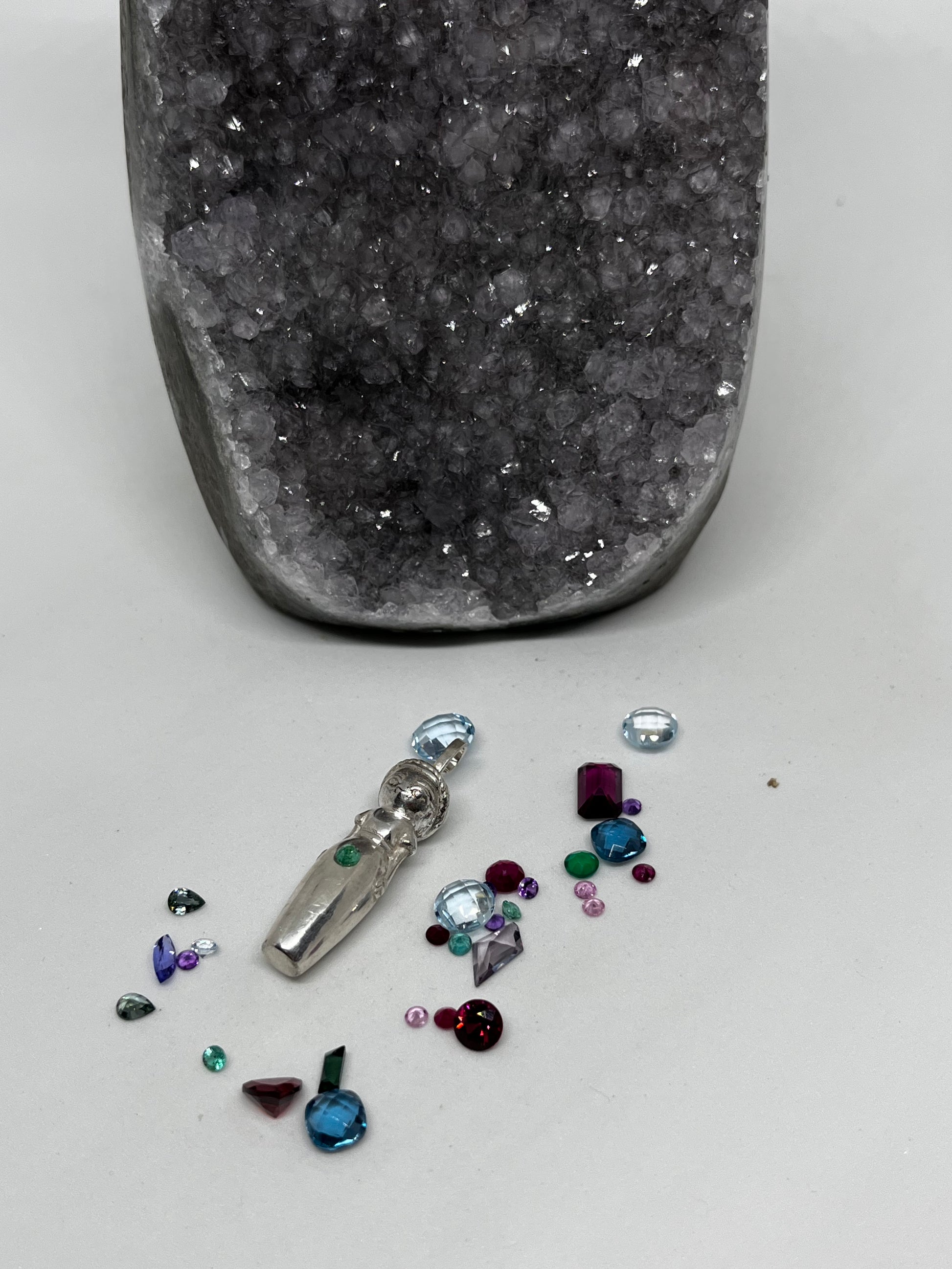 La piedra puede ser diamante blanco, diamante negro, esmeralda, rubí, zafiro azul, zafiro rosado, amatista.